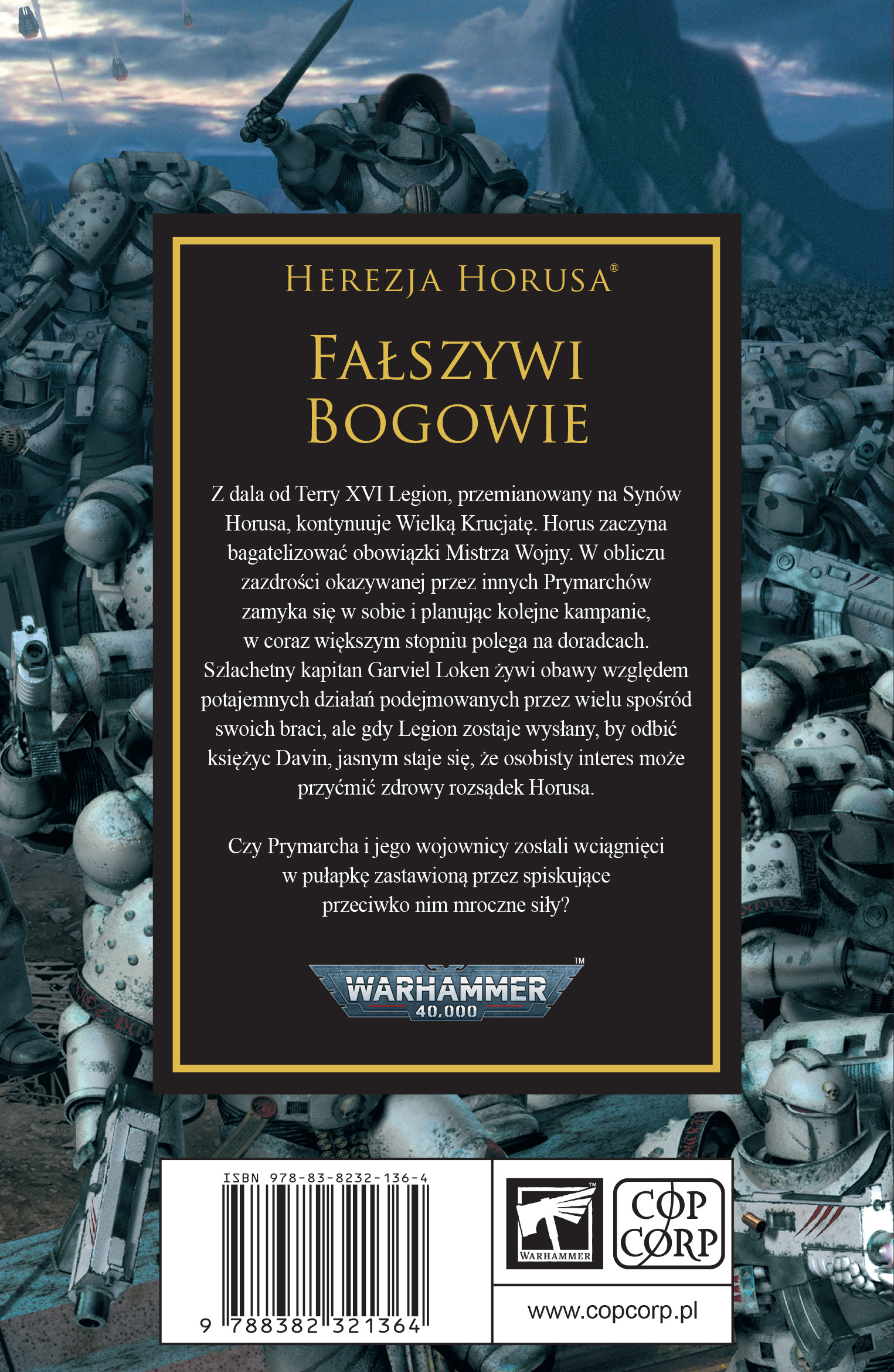 Fałszywi Bogowie to lektura obowiązkowa dla fanów Herezji Horusa, którzy chcą śledzić narastający upadek największego dowódcy Imperium. Jeśli skończyłeś Wywyższenie Horusa i pragniesz wiedzieć, co wydarzyło się na Davin – ta powieść da ci odpowiedzi i postawi nowe pytania. Graham McNeill stworzył thriller polityczny w galaktycznej skali, który trzyma w napięciu do ostatniej strony.